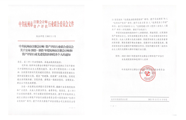 行业党委给予的荣誉既是鼓励也是鞭策,公司党支部将以此次表彰为契机,持续深化党建引领作用,不断提升党建工作规范化、科学化水平,推动党建与业务深度融合再上新台阶,始终牢记初心使命,坚守行业诚信主线,以更饱满的热情、更务实的作风、更专业的能力,书写杭州市注册会计师和资产评估行业党建与发展的新篇章!